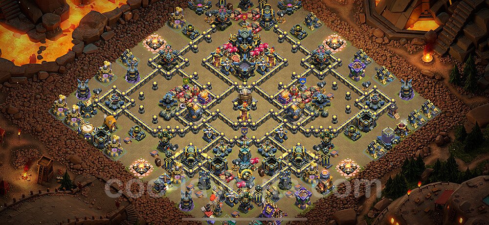 This Town Hall 17 war base is specifically designed to defend against 2-star and 3-star attacks in Clan Wars and Clan War Leagues. The strategic placement of defenses creates multiple compartments that force attackers to use more troops and spells than anticipated. Key defensive structures like Eagle Artillery, Inferno Towers, and X-Bows are positioned to cover crucial sections of the base, making it extremely difficult for opponents to secure a perfect attack. The core of this war base features a centralized Town Hall and Clan Castle, protected by multiple layers of walls and high-damage defenses. This layout forces attackers to commit significant resources just to reach the center, often leaving them without enough firepower to secure the Town Hall destruction. The anti-2-star design ensures that even if attackers breach the outer defenses, they'll struggle to achieve a 50% destruction rating. Air defenses are strategically spread to counter popular air attack strategies like LaLoon (Lava Hound + Balloons) and Electrone (Electro Dragons + Stone Slammer). The symmetrical trap placement and strategic Hidden Tesla positions create deadly surprise elements that can completely derail an attacker's plan. This base has been tested against various meta attack strategies and has consistently proven effective in preventing 3-star attacks.