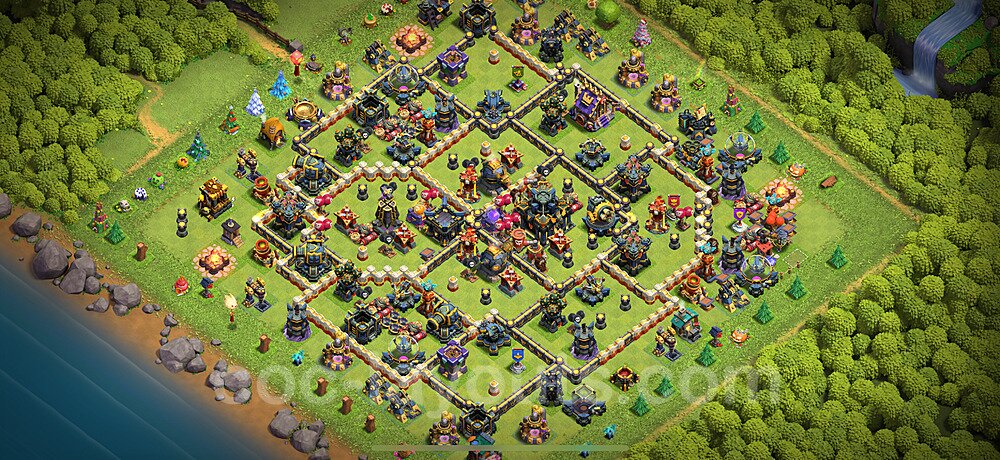 This Town Hall 17 trophy pushing base is engineered for maximum defensive capability to help you climb and maintain higher trophy leagues. The design focuses on preventing attackers from achieving the 50% destruction threshold needed to steal trophies, with a heavily fortified Town Hall position and anti-2-star compartmentalization. This layout is perfect for competitive players aiming to reach Champion, Titan, or Legend League. The strategic placement of defenses creates overlapping coverage that makes it nearly impossible for attackers to access the core without facing devastating firepower. High-DPS defenses like Inferno Towers and Eagle Artillery are positioned to protect the Town Hall from all angles, while splash damage defenses counter mass troop strategies. The anti-air coverage is exceptionally strong, with Air Defenses, Air Sweepers, and Wizard Towers positioned to eliminate aerial threats quickly. Trap placement in this trophy base is optimized to counter popular attack strategies seen in higher leagues. Spring Traps are positioned to eliminate Hog Riders and Valkyries, while Giant Bombs target Balloons and Wall Breakers. The base's asymmetrical design confuses attackers' pathing algorithms, causing troops to split and take unnecessary damage. This layout has been battle-tested in Legend League and has consistently helped players maintain their trophies against skilled attackers.