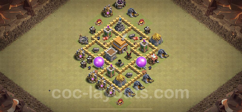 This Town Hall 5 war base is specifically designed to defend against 2-star and 3-star attacks in Clan Wars and Clan War Leagues. The strategic placement of defenses creates multiple compartments that force attackers to use more troops and spells than anticipated. Key defensive structures like Eagle Artillery, Inferno Towers, and X-Bows are positioned to cover crucial sections of the base, making it extremely difficult for opponents to secure a perfect attack. The core of this war base features a centralized Town Hall and Clan Castle, protected by multiple layers of walls and high-damage defenses. This layout forces attackers to commit significant resources just to reach the center, often leaving them without enough firepower to secure the Town Hall destruction. The anti-2-star design ensures that even if attackers breach the outer defenses, they'll struggle to achieve a 50% destruction rating. Air defenses are strategically spread to counter popular air attack strategies like LaLoon (Lava Hound + Balloons) and Electrone (Electro Dragons + Stone Slammer). The symmetrical trap placement and strategic Hidden Tesla positions create deadly surprise elements that can completely derail an attacker's plan. This base has been tested against various meta attack strategies and has consistently proven effective in preventing 3-star attacks.
