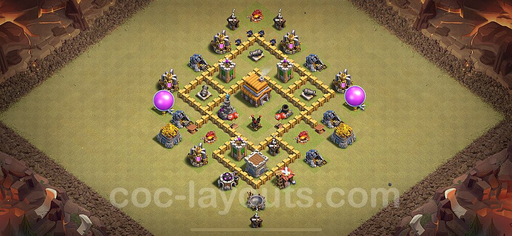 This Town Hall 5 war base is specifically designed to defend against 2-star and 3-star attacks in Clan Wars and Clan War Leagues. The strategic placement of defenses creates multiple compartments that force attackers to use more troops and spells than anticipated. Key defensive structures like Eagle Artillery, Inferno Towers, and X-Bows are positioned to cover crucial sections of the base, making it extremely difficult for opponents to secure a perfect attack. The core of this war base features a centralized Town Hall and Clan Castle, protected by multiple layers of walls and high-damage defenses. This layout forces attackers to commit significant resources just to reach the center, often leaving them without enough firepower to secure the Town Hall destruction. The anti-2-star design ensures that even if attackers breach the outer defenses, they'll struggle to achieve a 50% destruction rating. Air defenses are strategically spread to counter popular air attack strategies like LaLoon (Lava Hound + Balloons) and Electrone (Electro Dragons + Stone Slammer). The symmetrical trap placement and strategic Hidden Tesla positions create deadly surprise elements that can completely derail an attacker's plan. This base has been tested against various meta attack strategies and has consistently proven effective in preventing 3-star attacks.