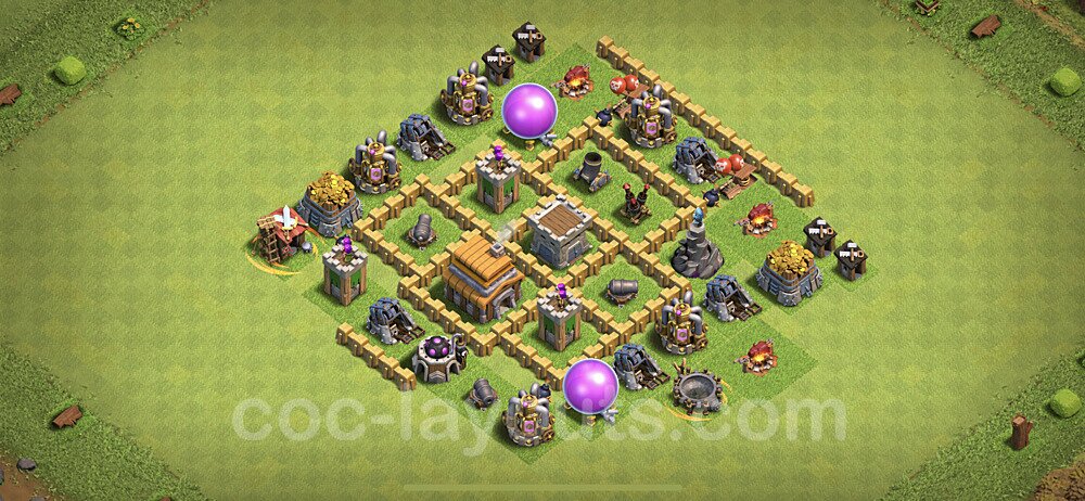This Town Hall 5 trophy pushing base is engineered for maximum defensive capability to help you climb and maintain higher trophy leagues. The design focuses on preventing attackers from achieving the 50% destruction threshold needed to steal trophies, with a heavily fortified Town Hall position and anti-2-star compartmentalization. This layout is perfect for competitive players aiming to reach Champion, Titan, or Legend League. The strategic placement of defenses creates overlapping coverage that makes it nearly impossible for attackers to access the core without facing devastating firepower. High-DPS defenses like Inferno Towers and Eagle Artillery are positioned to protect the Town Hall from all angles, while splash damage defenses counter mass troop strategies. The anti-air coverage is exceptionally strong, with Air Defenses, Air Sweepers, and Wizard Towers positioned to eliminate aerial threats quickly. Trap placement in this trophy base is optimized to counter popular attack strategies seen in higher leagues. Spring Traps are positioned to eliminate Hog Riders and Valkyries, while Giant Bombs target Balloons and Wall Breakers. The base's asymmetrical design confuses attackers' pathing algorithms, causing troops to split and take unnecessary damage. This layout has been battle-tested in Legend League and has consistently helped players maintain their trophies against skilled attackers.