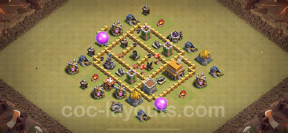 This Town Hall 5 war base is specifically designed to defend against 2-star and 3-star attacks in Clan Wars and Clan War Leagues. The strategic placement of defenses creates multiple compartments that force attackers to use more troops and spells than anticipated. Key defensive structures like Eagle Artillery, Inferno Towers, and X-Bows are positioned to cover crucial sections of the base, making it extremely difficult for opponents to secure a perfect attack. The core of this war base features a centralized Town Hall and Clan Castle, protected by multiple layers of walls and high-damage defenses. This layout forces attackers to commit significant resources just to reach the center, often leaving them without enough firepower to secure the Town Hall destruction. The anti-2-star design ensures that even if attackers breach the outer defenses, they'll struggle to achieve a 50% destruction rating. Air defenses are strategically spread to counter popular air attack strategies like LaLoon (Lava Hound + Balloons) and Electrone (Electro Dragons + Stone Slammer). The symmetrical trap placement and strategic Hidden Tesla positions create deadly surprise elements that can completely derail an attacker's plan. This base has been tested against various meta attack strategies and has consistently proven effective in preventing 3-star attacks.
