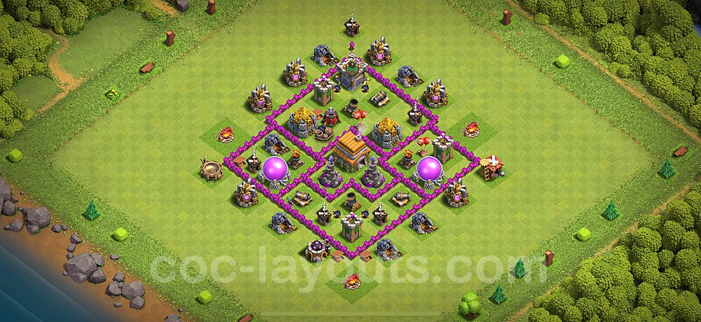 TH6 Hybrid Village Layout – Hybrid Defense Ranked Design Updated 2026