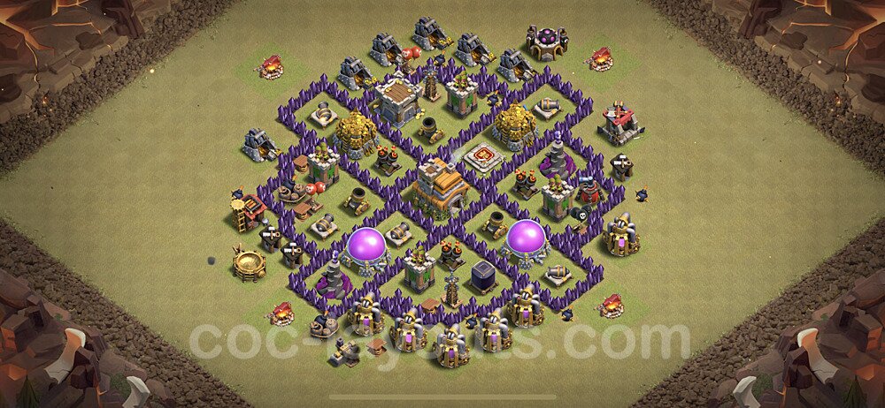 This Town Hall 7 hybrid base offers the best of both worlds - strong resource protection combined with effective trophy defense. The versatile design makes it an excellent choice for players who want to protect their loot while maintaining their trophy count. This balanced approach ensures you don't sacrifice one aspect of defense for another, making it ideal for active players across all league levels. The hybrid layout features centralized resource storages alongside a well-protected Town Hall, with multiple defensive layers that deter both farming raids and trophy pushers. High-value targets are strategically positioned within overlapping defense ranges, forcing attackers to make difficult choices about which objectives to prioritize. The compartmentalized design prevents attackers from easily achieving both loot destruction and the Town Hall kill in a single attack. Defense placement in this hybrid base creates strong coverage against both ground and air attacks. Inferno Towers, X-Bows, and Eagle Artillery work in concert to eliminate threats quickly, while splash damage defenses like Wizard Towers and Bomb Towers counter swarm strategies. The base's funnel-resistant design and strategic trap placement make it effective against popular attack strategies including QC LaLoon (Queen Charge Lava Hound Balloon), Blizzard attacks, and Yeti Smash compositions.