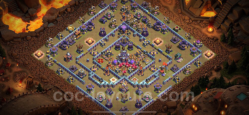 This Town Hall 15 war base is specifically designed to defend against 2-star and 3-star attacks in Clan Wars and Clan War Leagues. The strategic placement of defenses creates multiple compartments that force attackers to use more troops and spells than anticipated. Key defensive structures like Eagle Artillery, Inferno Towers, and X-Bows are positioned to cover crucial sections of the base, making it extremely difficult for opponents to secure a perfect attack. The core of this war base features a centralized Town Hall and Clan Castle, protected by multiple layers of walls and high-damage defenses. This layout forces attackers to commit significant resources just to reach the center, often leaving them without enough firepower to secure the Town Hall destruction. The anti-2-star design ensures that even if attackers breach the outer defenses, they'll struggle to achieve a 50% destruction rating. Air defenses are strategically spread to counter popular air attack strategies like LaLoon (Lava Hound + Balloons) and Electrone (Electro Dragons + Stone Slammer). The symmetrical trap placement and strategic Hidden Tesla positions create deadly surprise elements that can completely derail an attacker's plan. This base has been tested against various meta attack strategies and has consistently proven effective in preventing 3-star attacks.