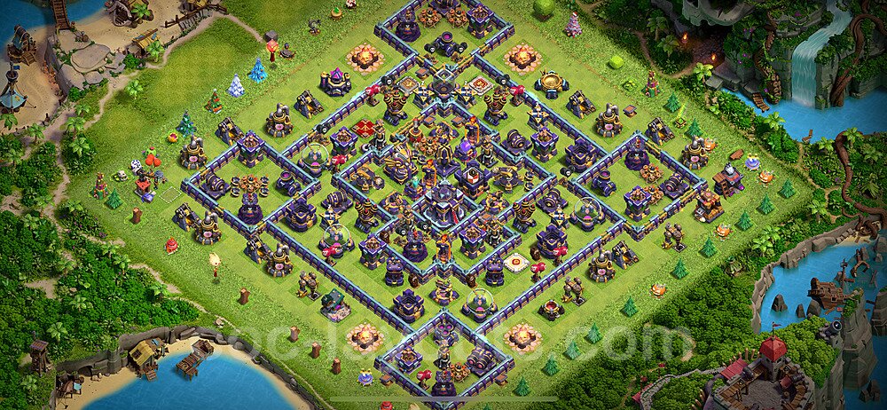 This Town Hall 15 hybrid base offers the best of both worlds - strong resource protection combined with effective trophy defense. The versatile design makes it an excellent choice for players who want to protect their loot while maintaining their trophy count. This balanced approach ensures you don't sacrifice one aspect of defense for another, making it ideal for active players across all league levels. The hybrid layout features centralized resource storages alongside a well-protected Town Hall, with multiple defensive layers that deter both farming raids and trophy pushers. High-value targets are strategically positioned within overlapping defense ranges, forcing attackers to make difficult choices about which objectives to prioritize. The compartmentalized design prevents attackers from easily achieving both loot destruction and the Town Hall kill in a single attack. Defense placement in this hybrid base creates strong coverage against both ground and air attacks. Inferno Towers, X-Bows, and Eagle Artillery work in concert to eliminate threats quickly, while splash damage defenses like Wizard Towers and Bomb Towers counter swarm strategies. The base's funnel-resistant design and strategic trap placement make it effective against popular attack strategies including QC LaLoon (Queen Charge Lava Hound Balloon), Blizzard attacks, and Yeti Smash compositions.