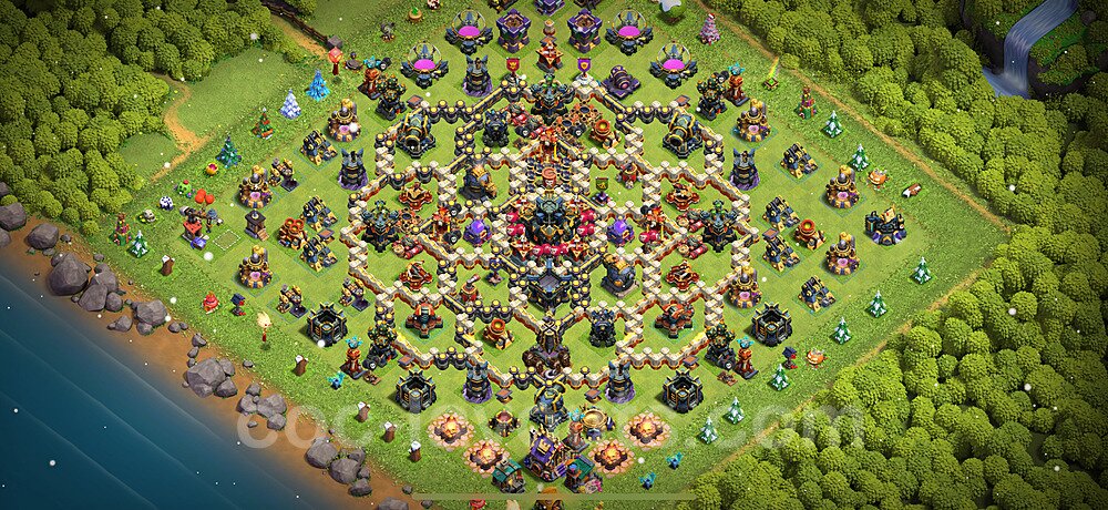 This Town Hall 17 trophy pushing base is engineered for maximum defensive capability to help you climb and maintain higher trophy leagues. The design focuses on preventing attackers from achieving the 50% destruction threshold needed to steal trophies, with a heavily fortified Town Hall position and anti-2-star compartmentalization. This layout is perfect for competitive players aiming to reach Champion, Titan, or Legend League. The strategic placement of defenses creates overlapping coverage that makes it nearly impossible for attackers to access the core without facing devastating firepower. High-DPS defenses like Inferno Towers and Eagle Artillery are positioned to protect the Town Hall from all angles, while splash damage defenses counter mass troop strategies. The anti-air coverage is exceptionally strong, with Air Defenses, Air Sweepers, and Wizard Towers positioned to eliminate aerial threats quickly. Trap placement in this trophy base is optimized to counter popular attack strategies seen in higher leagues. Spring Traps are positioned to eliminate Hog Riders and Valkyries, while Giant Bombs target Balloons and Wall Breakers. The base's asymmetrical design confuses attackers' pathing algorithms, causing troops to split and take unnecessary damage. This layout has been battle-tested in Legend League and has consistently helped players maintain their trophies against skilled attackers.