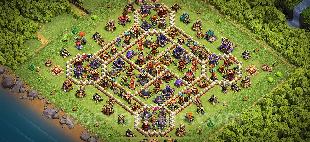 Click the "View in Clash of Clans" button above to copy the base link. Open Clash of Clans, go to your base layout editor, and paste the link to instantly import this defensive layout. Make sure all defenses shown in the preview are available in your Town Hall level before importing.