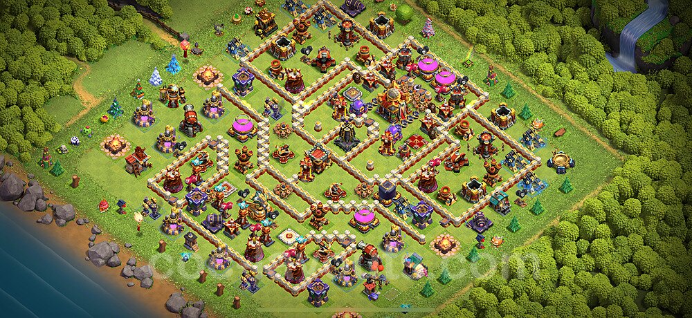 This Town Hall 16 trophy pushing base is engineered for maximum defensive capability to help you climb and maintain higher trophy leagues. The design focuses on preventing attackers from achieving the 50% destruction threshold needed to steal trophies, with a heavily fortified Town Hall position and anti-2-star compartmentalization. This layout is perfect for competitive players aiming to reach Champion, Titan, or Legend League. The strategic placement of defenses creates overlapping coverage that makes it nearly impossible for attackers to access the core without facing devastating firepower. High-DPS defenses like Inferno Towers and Eagle Artillery are positioned to protect the Town Hall from all angles, while splash damage defenses counter mass troop strategies. The anti-air coverage is exceptionally strong, with Air Defenses, Air Sweepers, and Wizard Towers positioned to eliminate aerial threats quickly. Trap placement in this trophy base is optimized to counter popular attack strategies seen in higher leagues. Spring Traps are positioned to eliminate Hog Riders and Valkyries, while Giant Bombs target Balloons and Wall Breakers. The base's asymmetrical design confuses attackers' pathing algorithms, causing troops to split and take unnecessary damage. This layout has been battle-tested in Legend League and has consistently helped players maintain their trophies against skilled attackers.